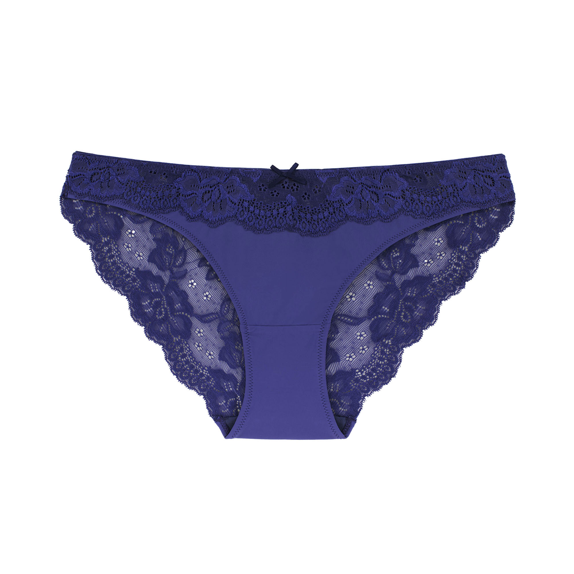 Sügavsinised keskmise katvusega püksid on valmistatud ümbertöödeldud pitsist ja mikrokangast.