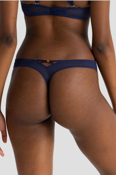 Naiselikud ja elegantsed stringid, mille esiosa on läikiva tikandiga poolläbipaistvast kangast, tagumine osa kahekordsest tüllist, mis muudab need riiete all nähtamatuks.