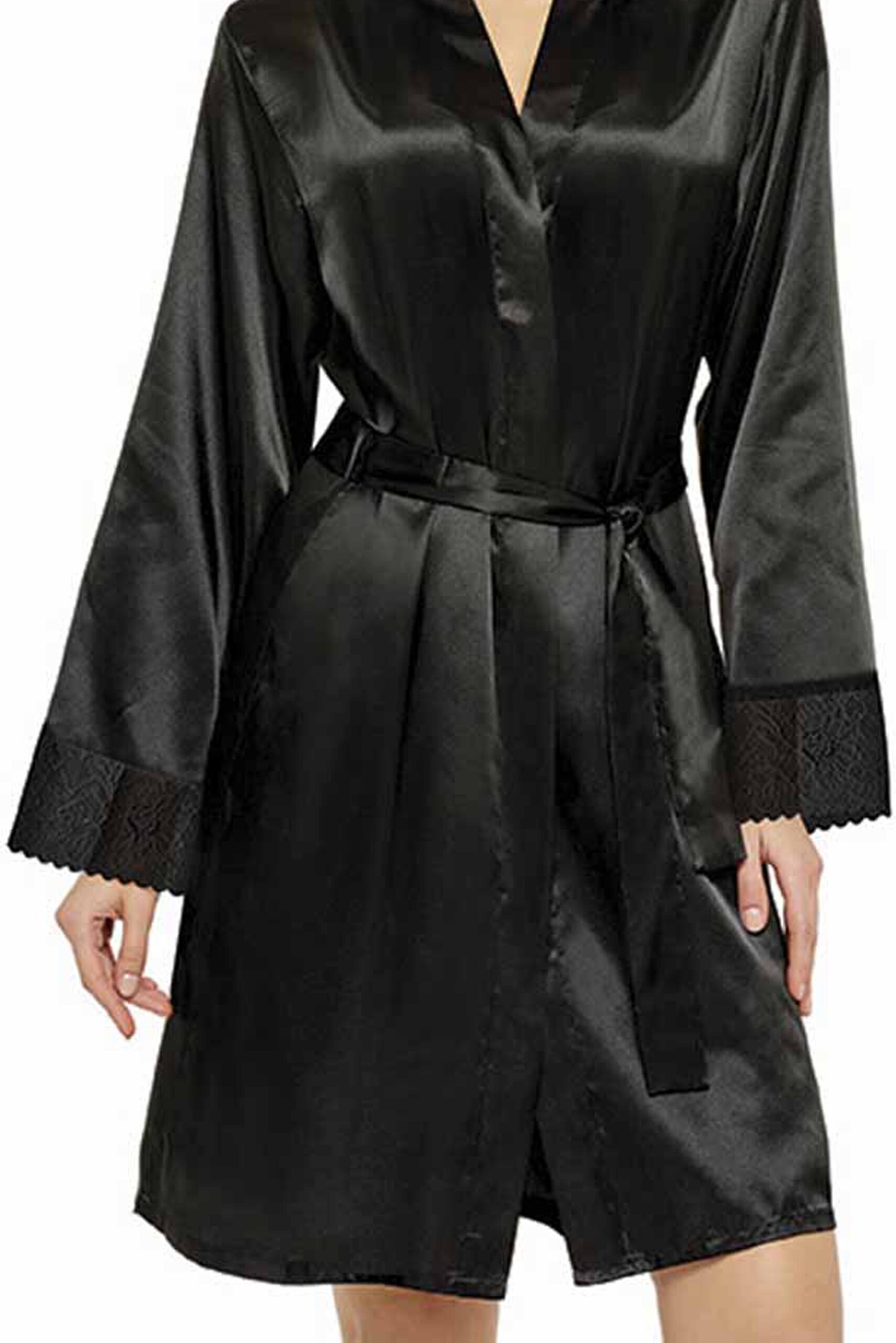 Pehmest täissiidist lühike kimono, varruka otstes lai pits.