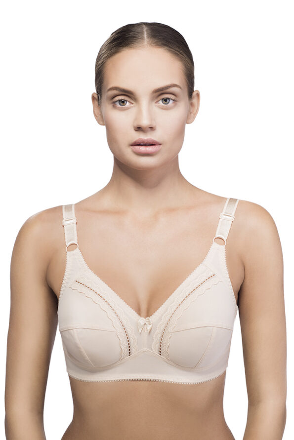 Linetten klassikko – pehmeät kaarituettomat rintaliivit. Rintaliiveissä on leveämmät olkaimet.