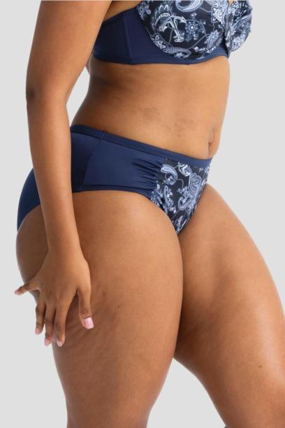 Klassikalises hipsterlikus stiilis päevituspüksid. Ees küljel on krooked, mis muudavad kõhuosa optiliselt lamedamaks ja saledamaks. Pükste esiosa on vooderdatud võrguga.