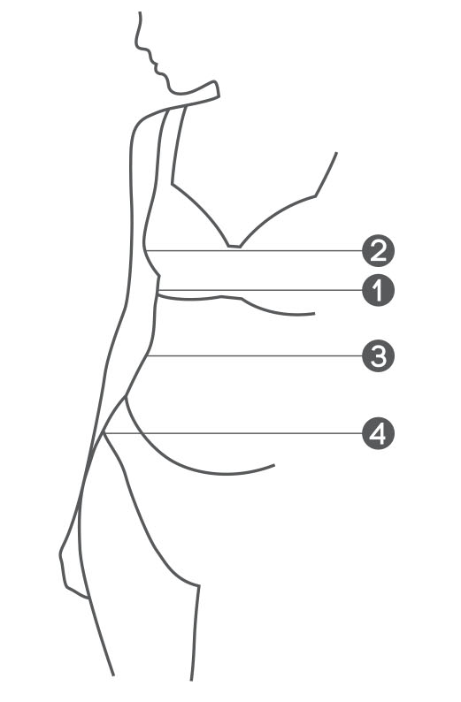 Vali alati õige suurusega rinnahoidja, bodi või korsett.Sinu rinnahoidja suurus sõltub rinnaalusest ümbermõõdust ja rinnapealsest ümbermõõdust (täidlusest). Allolev süsteem aitab Sul õiget suurust teada. Mõõtmisel on parem abi paluda, ning olemasolev rinnahoidja selga jätta.Tehke nii:1. Mõõtke rinnaalune ümbermõõt (cm). 2. Mõõtke ümbermõõt üle rinna kõrgeima punkti (cm).