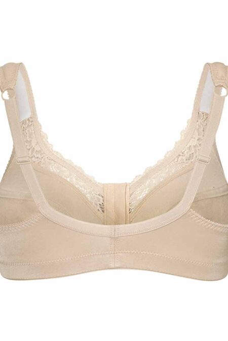 Mugav esikinnisega rinnahoidja, millel on laiad õlapaelad, toetav küljedetail ja puuvillane korvi vooder.