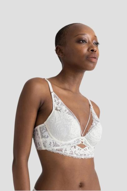 Sensuaalse pikendatud siluetiga rinnahoidja on kergelt polsterdatud ning valmistatud orgaanilisest pitsist ja võrkkangast.