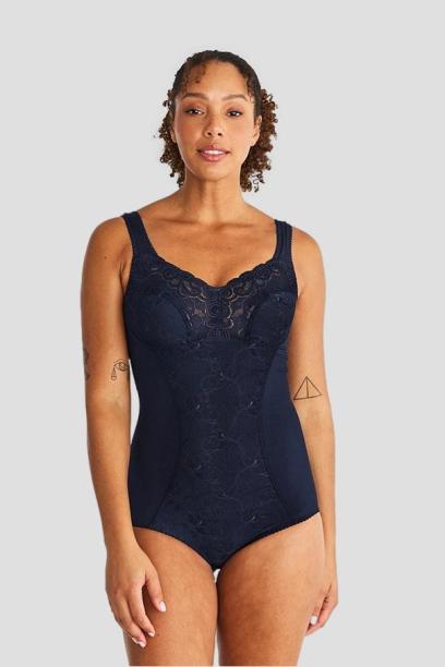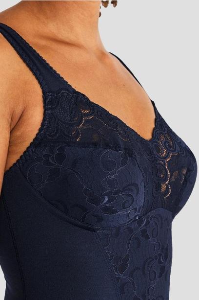 Ilus, vormitud body elastse pitsiga. Vormib mugavalt vöökohta ja puusi ning tõstab ja toetab rindkere. Laiad polsterdatud ja reguleeritavad rihmad vähendavad koormust õlgadele. Öko-Tex sertifikaadiga materjali on ohutu kasutada.